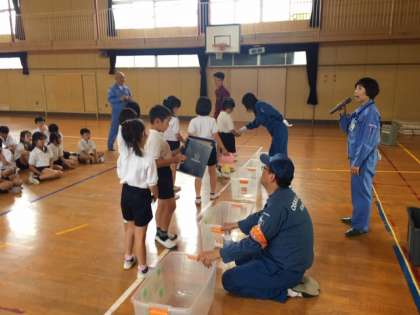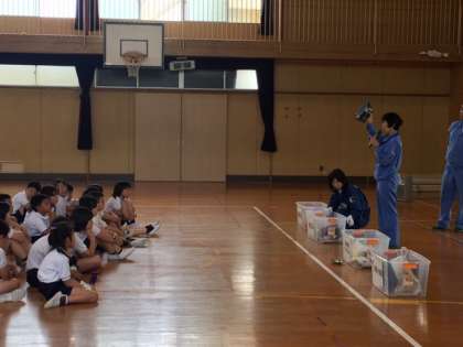 その後は、体育館でごみの分別ゲームなどを行いました。