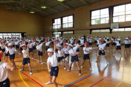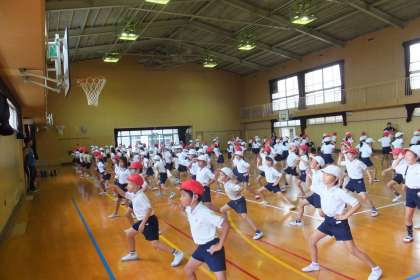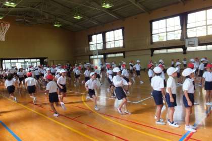 まず、振り付けを覚えなければならないので、今日は体育館で合同練習です。