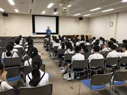 焼却工場では、まずホールで焼却工場についてのビデオを見たり、働いている方のお話を聞いたりします。