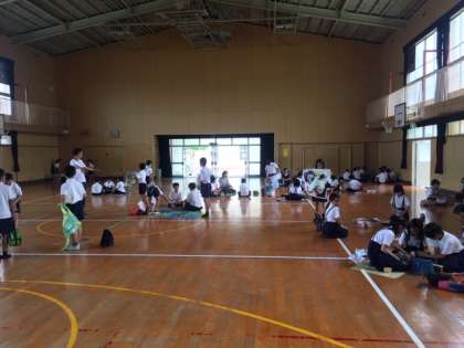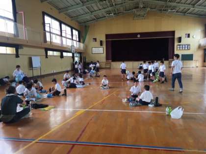 平野焼却工場での見学を終えて、1時前に4年生は帰校しました。今日は給食ではなくてお弁当です。いつもと違って体育館で食べるお弁当にみんな喜んでいました。