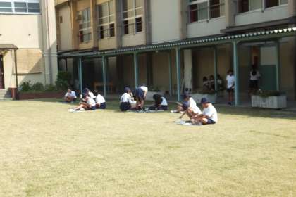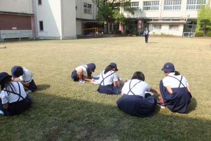 この日は、中運動場に出て、ノートに色鉛筆で空の雲の様子を描きました。