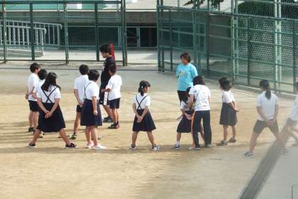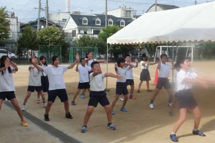 9月18日(木)、昨日の放課後、東運動場で5・6年生の応援団のメンバーが頑張って練習していました。