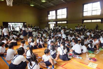 ルール説明があり、ゲームが始まると、上の学年の児童が下の学年の児童の面倒を見て、みんな楽しそうでした。