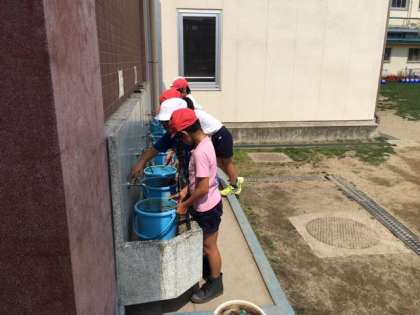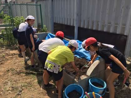 今日はその第1歩として、バケツに土と水を入れ、よく混ぜるという作業をしました。