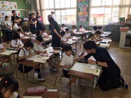 「ぼく」「やま」「いきました」の単語の間に何を入れたらいいのか考えたり、自分