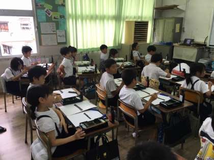 まずは、習字セットの各道具の名前をまず確認し、それから筆の持ち方を習いました。