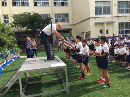 今朝の朝会では、そのことをみんなに伝え表彰式が行われました。