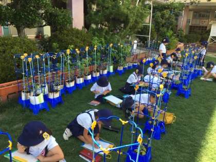 みんなでしっかりと葉っぱの形を見て、観察カードに絵を描いていました。