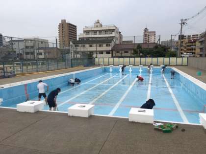 明後日には、きれいになったプールに子どもたちの歓声が上がることでしょう!