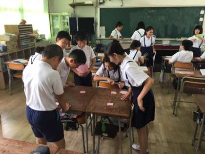 子どもたちは百人一首をすることが好きで、休み時間にも対戦しています。