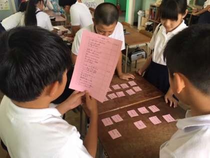 6年生は国語で古典に親しもうということで、百人一首に取り組んでいます。