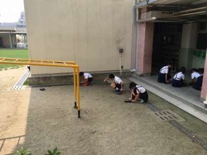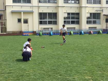 廊下で何度も競走させたり、中運動場を走らせたりと、楽しそうでした。