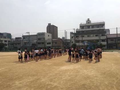 まずは、東運動場で今日のペアを確認し、プールへ移動。