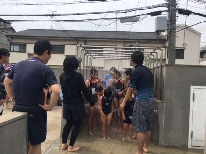 初めての大きなシャワーにビックリした子どももいましたが、誰も泣くことなくシャワーを浴びることができました。