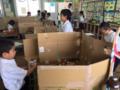 ペットボトルのキャップを飛ばし、得点を競うというゲームでした。一人が遊べる回数が多くて、何度も挑戦できたのが楽しかったです。