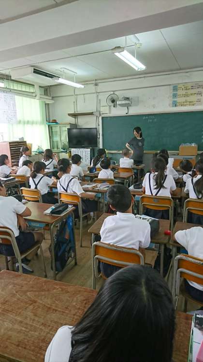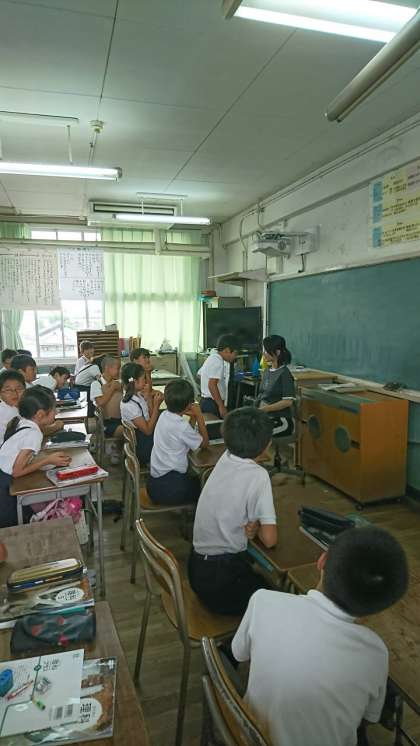 9月に赤ちゃんが生まれる予定の保健の先生から聴診器でお腹の音を聞かせてもらったり、お腹に赤ちゃんがいる感覚や性別がいつ決まるかなどの話を聞きました。