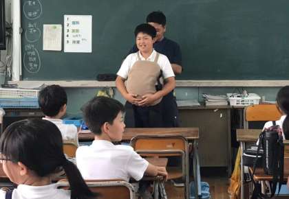 また、妊婦体験では、子どもから「お米持ってるみたいに重い。」という声が上がりました。