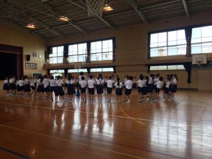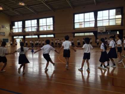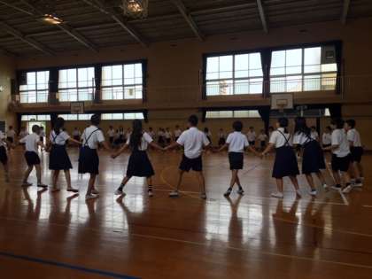 今日も講堂で林間に向けて、フォークダンスの練習をしていました。
