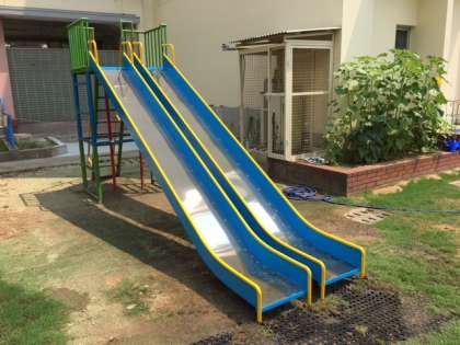 滑り台を補修しました。2学期から使用することができます。