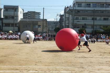 1年生は玉入れ、2年生は大玉ころがし、3年生は台風の目をしました!!
