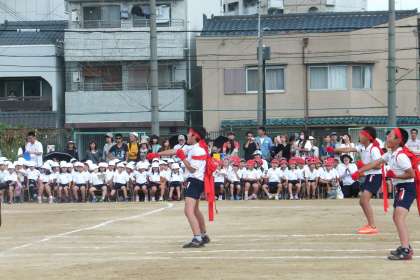 午後の応援合戦も赤白の団長がみんなを引っ張りました!!