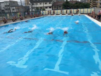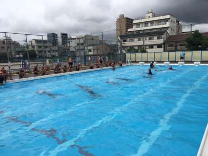 6時間目、それまでに降っていた雨が上がり、プールに入りました。