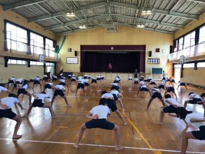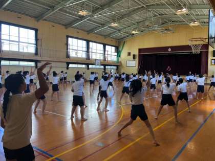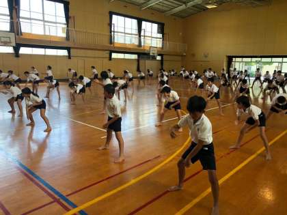 ソーラン節では、構えるだけで足全体に負荷がかかります。初めての動作でしんどそうな様子でしたが、みんなけど頑張りました。