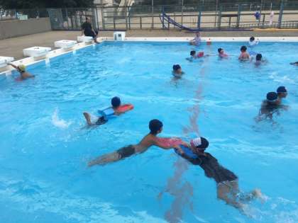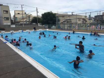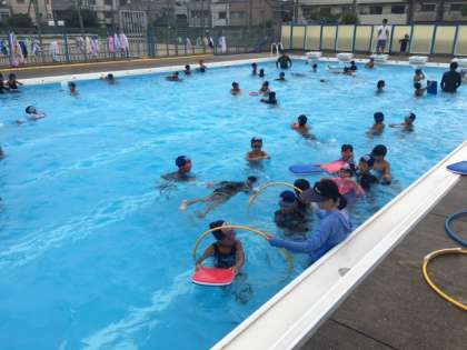 水慣れ、バタ足練習を少しした後は、たっぷりと自由時間をとってもらい、大喜びで遊んだり泳いだりしていました。