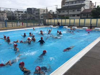 3年生は少し泳いだ後、みんなが大好きな宝ひろいゲームをしました。