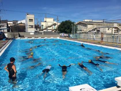 今日の1時間目は、4年生のプール納めでした。4年生は、グループで輪になって浮く活動をよく行っていましたが、今日も全員で一つの輪を作って笛の合図で浮きました。