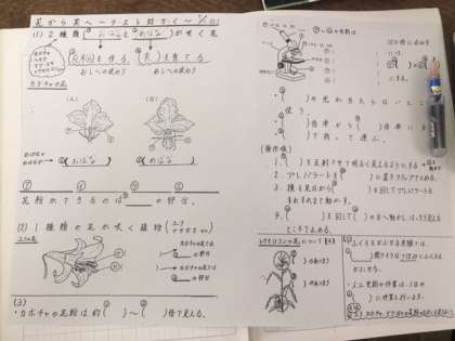 植物の花のつくりのまとめをプリントを使って、みんなでしていました。