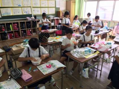 牛乳パックやその他色々な容器を使って、自分の作りたいおもちゃを作りました。