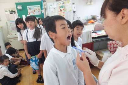 10月15日(水)、4年生がフッ化物塗布をしました。