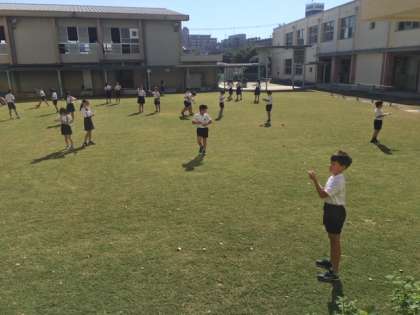ポン!ポン!と玉が飛びだす音と、子どもたちの歓声が中運動に響いていました。
