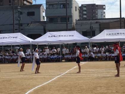 団長のかけ声に続いて、みんなの声が運動場に響きわたりました。