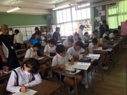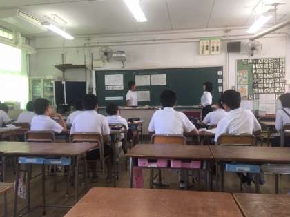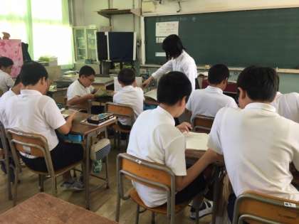 教育実習生は実習のまとめとして研究授業を行います。二人ともたくさんの教員に参観されるということで、さすがに緊張の色は隠せませんでしたが、一生懸命に指導している姿がとても印象的でした。