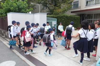 朝の正門では、児童会代表の児童たちの「赤い羽根募金お願いします!!」の大きな声が響きます。