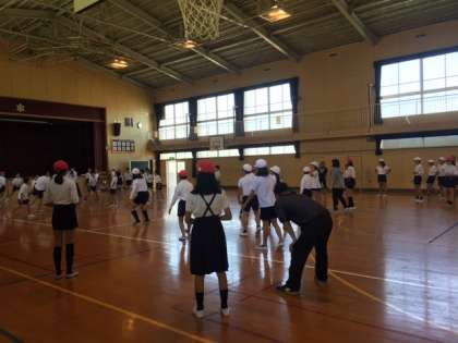 6年対5年で対戦しましたが、それぞれの実習生もまじって大盛り上がりでした。