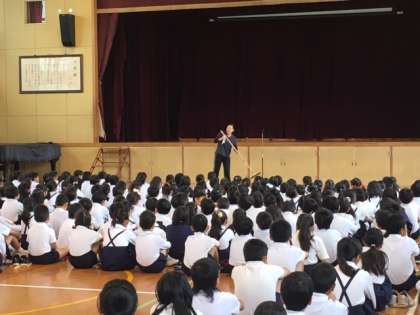 ?今朝の児童朝会では、校長先生から先生の教え子でもある宝塚スターの紅ゆずるさんのエピソードから真面目にコツコツ取り組むことの大事さと、その姿を見てくれている周囲の人が必ずいてるという話がありました。
