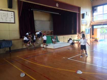 跳び箱の開脚跳びの練習をしていました。