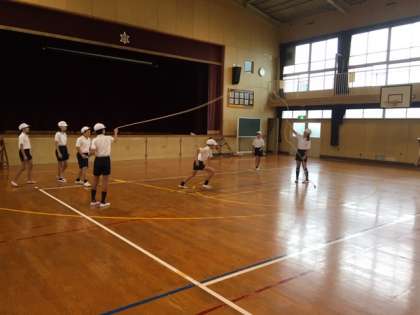 入るタイミングがつかみにくい友だちに対して「今!」という掛け声が周りの児童から上がっており、協力して記録を伸ばそうという温かい雰囲気に溢れていました。