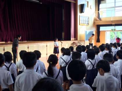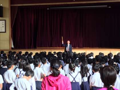 今朝の児童朝会では、校長先生より誰でもみんな金のフルート(良いところ)を持っているんだという内容の講話がありました。