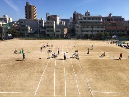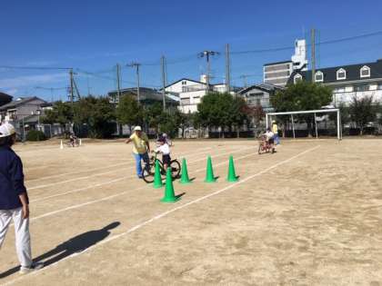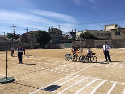 一旦停止しや交差点での安全確認などそれぞれの場面での動きを一人一人自転車を乗りながら指導してもらいました。