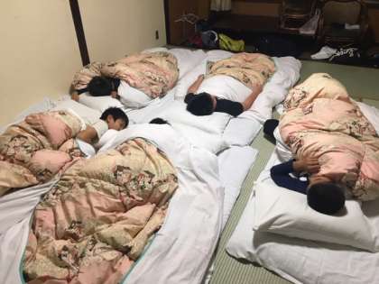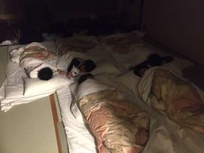 「明日あくびしながら水族館を周りたくない。」と言いながら布団に入った子をはじめ、みんなスペイン村で思いっきり楽しんだこともあり、早々と寝そうな感じです。