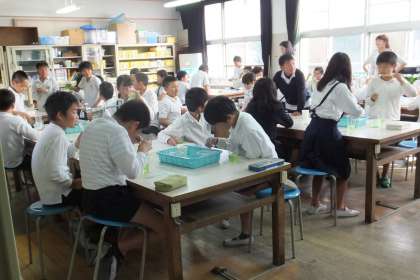 理科室では、「理科クラブ」がソーダづくりの実験をしていました。