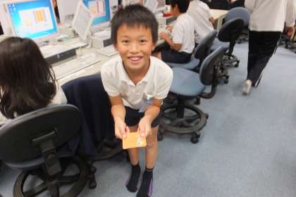 パソコン室では、「パソコンクラブ」が名刺づくりをしていました。