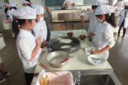 家庭科室では、「手作りクラブ」がクレープの調理実習をしていました。