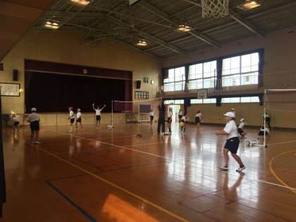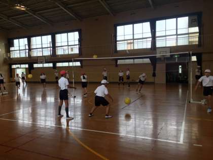 円を作ってのパス練習やサーブ練習をしていましたが、思ったところにボールを飛ばすのが難しく、あっちこっちにボールが飛んでいっていました。