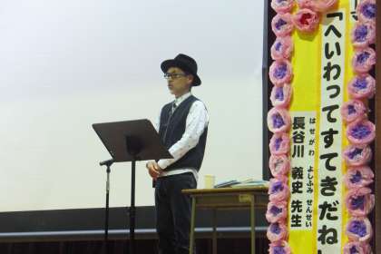 今回は、絵本作家の長谷川義史先生に「へいわってすてきだね」というテーマでお話しいただきました。