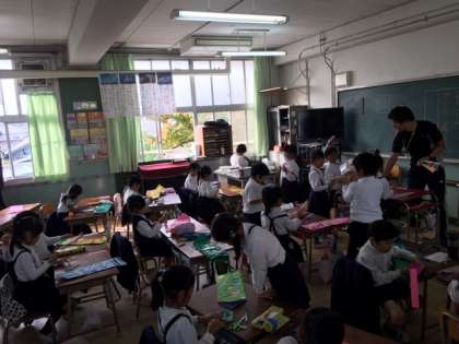 先日くしゃくしゃにした後に筒状にした画用紙のその後です。